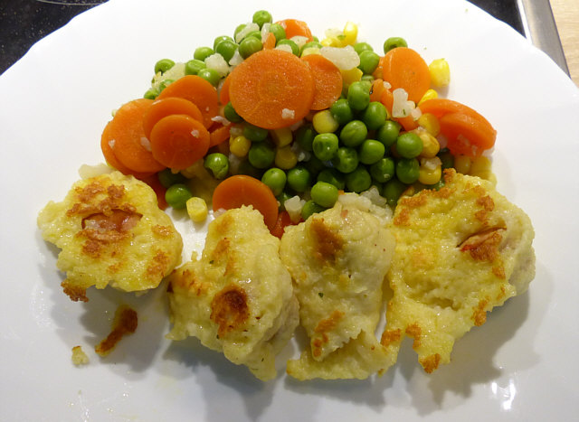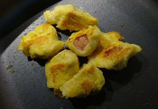 Würstchennocken mit Gemüse ... für 2-3 Personen: 2 Eier, etwas Milch,
