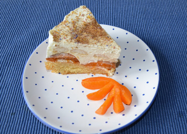 mit Marillenmarmelade bestreichen, etwas Quark/Sahnecreme auftragen,