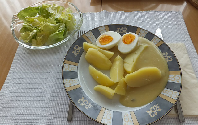 Dazu habe ich Kopfsalat gereicht und natürlich Kartoffeln.