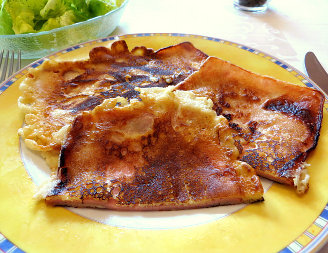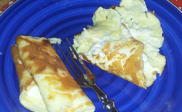 Gefüllter Pfannkuchen - Mehl, Salz, Milch, Ei = daraus einen dicken