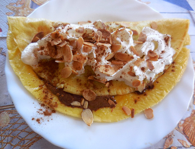 und dann obendrauf Sahne, Mandeln und Zimt.