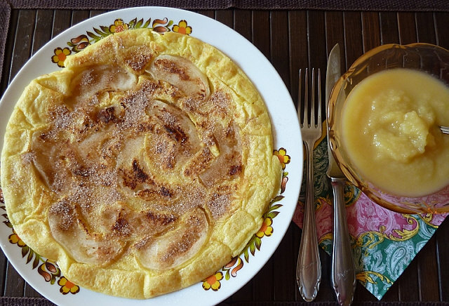 Dazu gibt es Zucker mit Zimt und Apfelmus. Einige mache ich ohne Äpfel