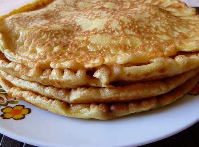 Hefeplinsen - 750g Mehl, 11/2l Milch, 2 EL Zucker, 5 Eier, 80g Hefe, 1