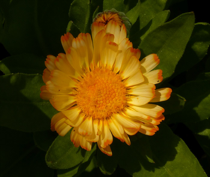 Mein Ringelblumenbeet ... ![]() ... blüht immer mehr ... so sah das Beet gestern aus. Es gibt heute also ganz aktuelle Bilder ... eine Sinfonie in Orange :)). ![]() Wenn man genau hinschaut, sieht man feine Unterschiede ... hier dunklere Blütenblattspitzen, ziemlich verdeckte dunkle Mitte ![]() Heller, außen etwas orange ![]() ganz orange, mit kleinen Winkern ![]() bisschen wirr in der Mitte, durchgehend gelb ![]() kräftig orange, in der Mitte gelb ![]() hellgelb, in der Mitte ein paar hochstehende Blütenblätter ![]() zwei kleine Würmchenwinker und eine dunkle Mitte ![]() sehr helles gelb, in der Mitte leicht orange** ![]() bad hair day oder so ;)) ![]() hier mal gelb mit sehr dunkler Mitte Ich hatte drei Samentütchen gesät und auch Sorten mit mehr Variabilität ... schön, dass wirklich nicht jede Ringelblume gleich ist :)). |