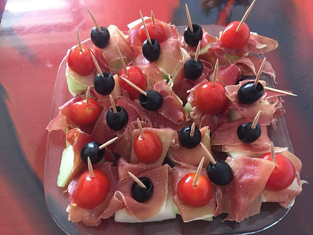 dazu Melonenstückchen mit Serrano-Schinken ... geht aber auch einzeln