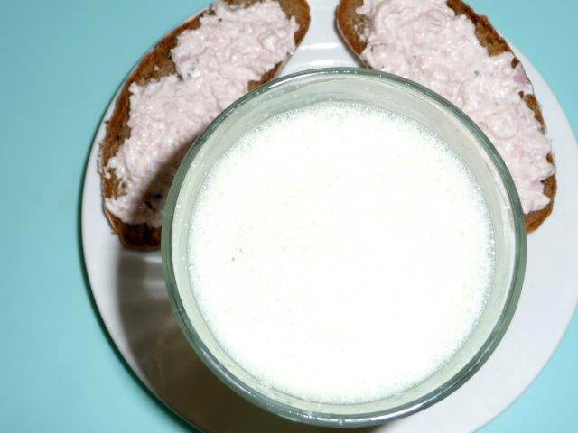 Joghurt-Gurken-Drink mit Brot und Schinkenaufstrich ... es ist zu heiß