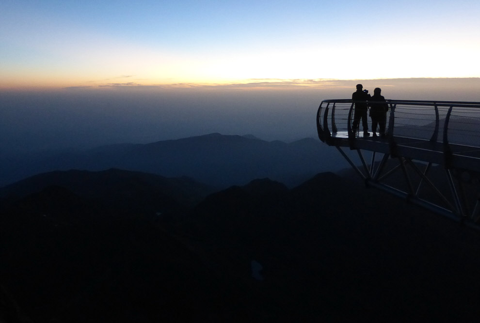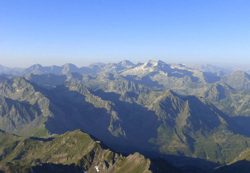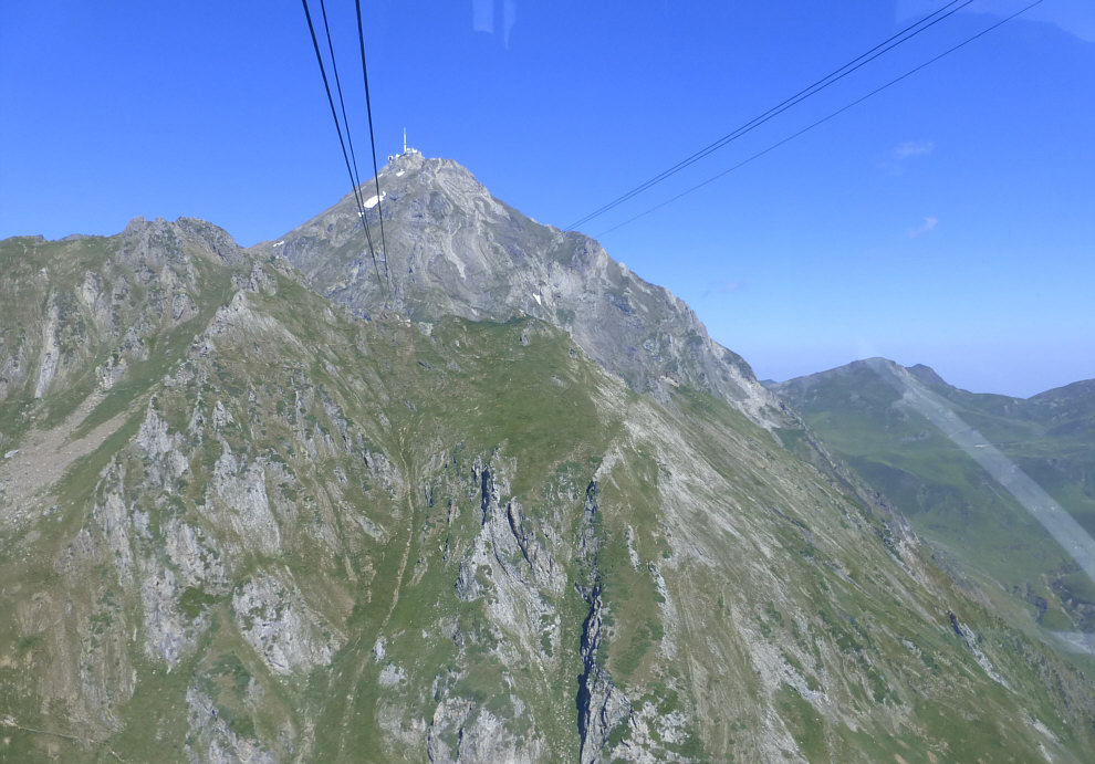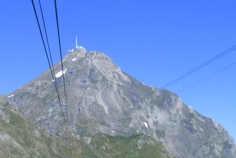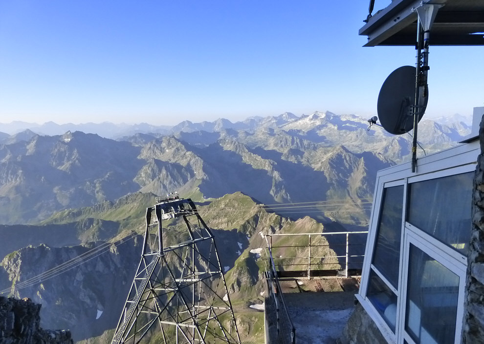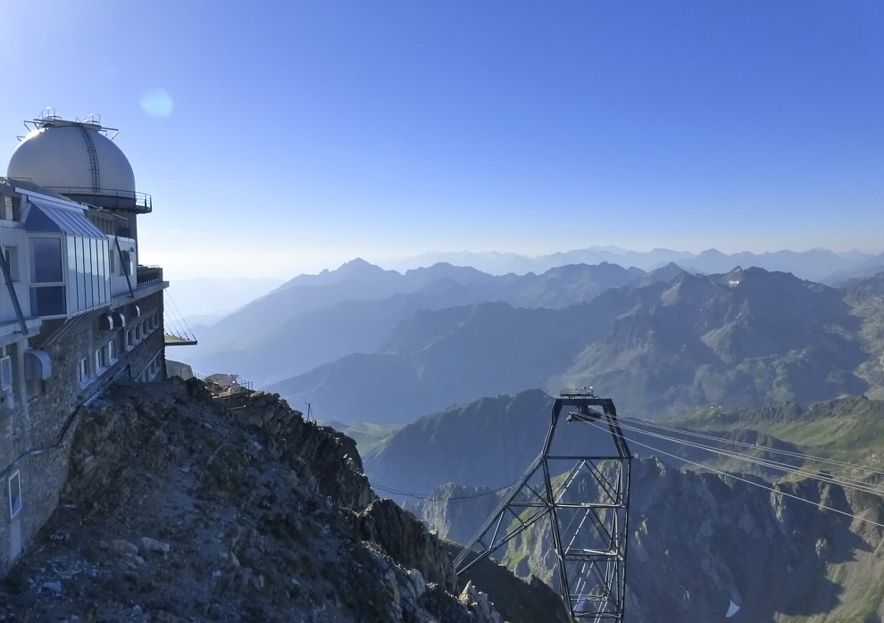 Ja, das passt heute sehr gut zum Tag ... über den Wolken ... dem Himmel so nah. Lamarmotte war auf dem "Pic du Midi", der Spitze des Südens. Das ist ein 2877 Meter hoher Berg in den Pyrenäen. Ganz oben ist ein Observatorium und ein Fernsehsender ... und man kann dort oben auch übernachten, etwas essen ... und natürlich die Aussicht genießen. Man sollte natürlich schon keine Höhenangst haben ... schon die Anfahrt ist nicht ohne ... ![]() ... wenn man langsam, aber stetig in Richtung Gipfel fährt. ![]() Von dort oben ist die Aussicht natürlich grandios ... ![]() ![]() ... und beim folgenden Blick sieht man nichts wie Natur, Berge, Ferne ... ![]() ... hier kann die Seele über die Berge schweben. Etwas enger ist der Gang durch die Flure ... ![]() ... und es sieht nicht nur ein bißchen wie auf einem Kreuzfahrtschiff aus, es wird auch so genannt: "Vaisseau des étoiles" auf deutsch "Sternenschiff". Innen gibt es 6 Stockwerke, viele Treppen, endlose Gänge, die für Tagestouristen unzugänglich sind. Deshalb werden die Übernachtungsgäste zu Beginn darauf hingewiesen, dass in dieser Höhe die Luft bereits 30% weniger Sauerstoff enthält und man sich deshalb nur sehr langsam durch Gänge und auf Treppen bewegen und viel trinken sollte. Wir könnten jetzt aufs Zimmer gehen ... ![]() ... aber dazu ist später immer noch Zeit ... ... denn was man nicht verpassen sollte, ist der erst in den letzten Tagen eingeweihte Aussichtspunkt ... ![]() ... für dessen Besuch man allerdings gutes Wetter abwarten sollte. Hier oben kann das Wetter schon mal immer wieder wechseln, doch wenn man Glück hat, dann hat man gerade zum Sonnenuntergang eine klare Sicht: ![]() |