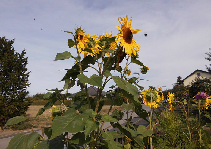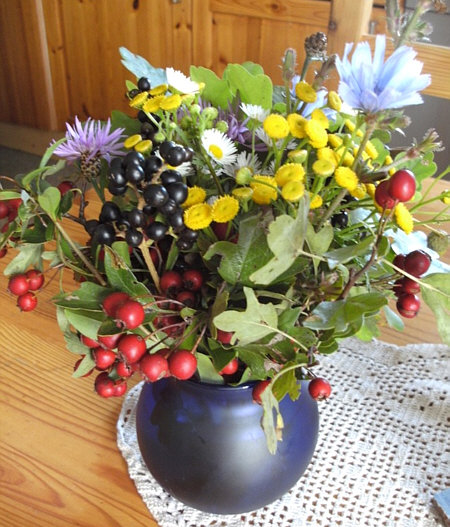 Das wird heute etwas ganz besonderes, denn es ist: ![]() Alle Bilder von Seelenfärblern und alle Bilder sind aktuell und wurden erst nach dem Aufruf letzten Montag fotografiert. Da freue ich mich jetzt drauf und zeige die Bilder chronologisch nach dem Posteingang sortiert: Lina ![]() Und die Kröte kam zum Hund ... denn in Hund Alf's Wasserbecken saß diese Kröte. Lina reichte ihr ein großes Blatt und da hüpfte sie auch sofort drauf. Es war die erste Kröte, die Lina in ihrer Gegend überhaupt gesehen hat, mit großer Willkommensfreude. MartinaK ![]() Das ist ein Pausenhörnchen ... denn dieser Rotpelz ist Martina in der Mittagspause im Botanischen Garten der UNI Mainz begegnet. Brigitte C-B ![]() Üppig blühende Septemberrosen bei Brigitte. Bettina F. ![]() Warum haben Blätter Löcher ? Damit man die Sonne einfangen kann :)). Elke M. ![]() Der erste Blick fällt aufs Schiff und dann auf die Gans und dort bleibt er hängen. Elke ist extra an die Mosel gegangen (in Koblenz), um ein Foto für diese Aktion zu machen. Die Mosel hat extremes Niedrigwasser und Elke war erstaunt, dass so ein großes Ausflugsschiff dort noch fährt. Die Ente hatte wohl gerade das Schiff verlassen und fand den Ausflug sehr schön ;-). Gerda ![]() Ja, wo sind wir denn hier ?? Das Bild könnte auch "Gerda im Gasometer" lauten, denn in diesem Gasometer in Oberhausen ist im Moment die Ausstellung "der Berg ruft". Sich vor das Bild stellen war ganz easy ... aber Gerda ist sich nicht sicher, ob sie sich auch auf die gezeigte Plattform begeben hätte. Monika G.-K. ![]() Eben noch bei Edeka und nun mitten auf der Showbühne oder so ... diese Topfpflanze steht bei Monika auf dem Balkon-Tisch und soll dort den Herbst einläuten. Ilse W. ![]() Doch doch, das ist ein aktuelles Bild ... denn Ilse war in der letzten Woche auf Rundreise durch Dalmatien und schickt uns ein Bild von der Insel Brac. Mit Möwen inclusive :). Xenophora ![]() Sonnenblumen und dicke Brummer im Rundflug. Mit den Kernen der Sonnenblume füttert Xenophora im Winter die Vögel. Nora Eule ![]() Ein Traum von Hibiskus ... als wenn der Sommer noch lange nicht zu Ende wäre. Aber ich glaube, er ahnt nur, dass er zum Überwintern leider stark geschnitten werden muss, denn wenn nicht, müsste Nora ihre Wohnung räumen, weil sie keinen Platz mehr hat. Ihre Wohnung gleicht ohnehin im Winter einem Dschungel. Der Hibiskus ist sicher mehr als 20 Jahre alt. Christine B. ![]() Herbstimpression vom Graukogel im Gasteiner Tal. Inge-Lore ![]() 50 zum 50sten ... diese selbst gebastelte Karte ist ein Geschenk für ein Geburtstagskind. Nani ![]() Feurig feurig ... das ist Nannis reichhaltige Chili-Ernte ... da möchte man fast reinbeißen. Aber nur fast ;)). Sabine P. ![]() Auch Sabine freut sich auf die kommende bunte Jahreszeit und hat deswegen dieses Blatt getöpfert. Mittlerweile belegt sie seit 4 Jahren einen Töpferkurs bei der VHS und es macht ihr immer noch Spaß. Christiane H. ![]() Eine Blaumeise in Christianes Garten ... man könnte glauben, sie wohnt in diesem Haus und bringt gleich das Essen an den Tisch ;). Inge ![]() Inge war dort, wo ich auch schon war ... im Garten der Schmetterlinge im Schloß Sayn. Die Schmetterlinge können dem Duft von Orangen und überreifer Bananen kaum widerstehen. Ingolf ![]() Da ist noch jemand in Urlaub ... und zwar Ingolf auf der Insel Usedom. Bei schönem Wetter die Insel mit dem Fahrrad erkunden und auch mal in der Ostsee baden. Bei 17 Grad Wassertemperatur kostet das erst mal Überwindung, aber dann kann mans aushalten. Wir sehen den Strand von Ückeritz. Beate (Schnecke) ![]() Einfach mal eine große Spaziergangsrunde drehen und schauen, ob die Natur einem nicht einen schönen Herbststrauß schenkt. Sylvia ![]() Urlaub zum Dritten ... Sylvia war 5 Tage auf Radtour im schönen Altmühltal. Das ist der Blick vom Röderturm in der Stadmauer auf die Häuser von Rothenburg ob der Tauber. Cloudy ![]() Dieses Haus steht in Lüneburg und Cloudy hat mit ihrer Englischgruppe dort eine Stadtführung Auch wenn Cloudy die Stadt gut kennt, gab es doch interessante Dinge, die neu für sie waren. Bemerkenswert bei diesem Haus sind die Köpfe, die die Erbauerfamilie darstellen und der typische Kran im Giebel. Mirjam ![]() Die letzte Tage mit Wärme genießen, bevor der Herbst mit Regen, Wind und kühlen Temperaturen kommt. Welche eine wundervolle Vielfalt, welch tolle kleine Momentaufnahmen der Seelenfärbler. Das ist so schön, das machen wir nun alle zwei Wochen :)). |