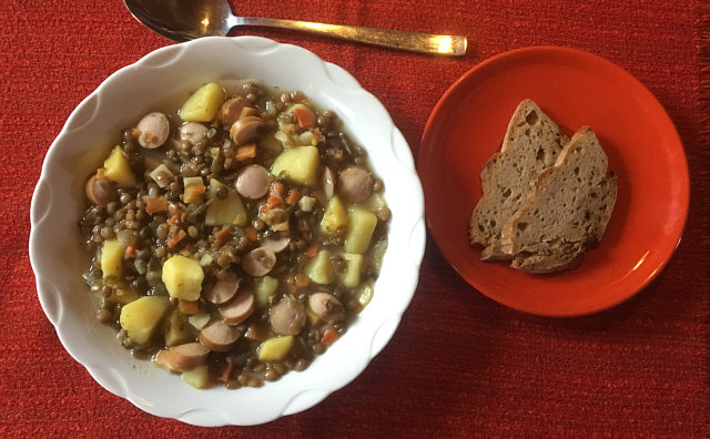 Jetzt gab es noch ein paar Würstchenscheiben dazu.