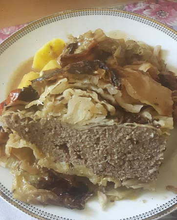 Das Hack verteilen und mit den restlichen Kohlblättern abdecken.