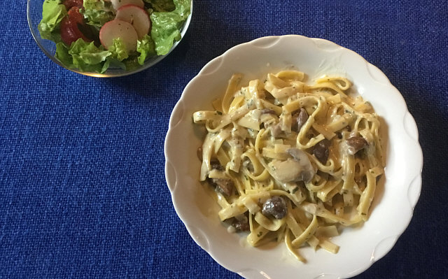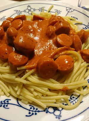 Es war eine Resteverwertung. Vom Vortag sind Spaghetti übriggeblieben.