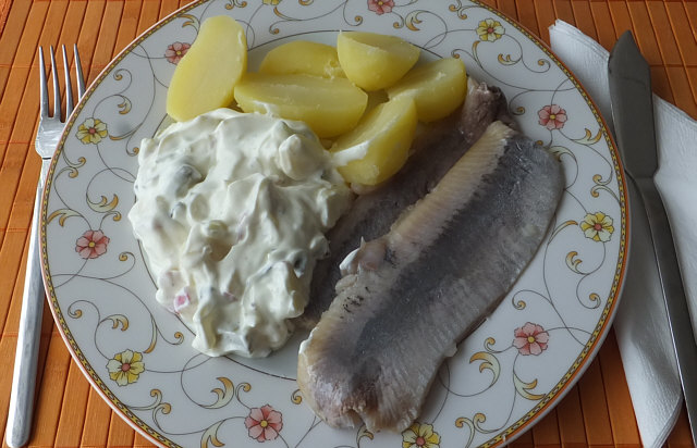 Matjes, Kartoffeln, ist klar ... die Beilage richte ich aus 1 Becher