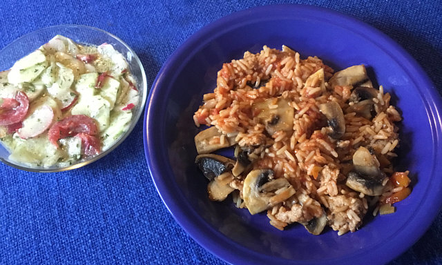 Heute gab es - selbstgekocht - Tomaten-Gehacktes-Pilz-Risotto und