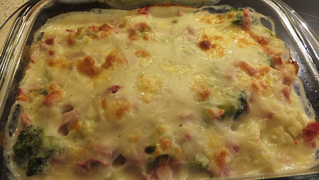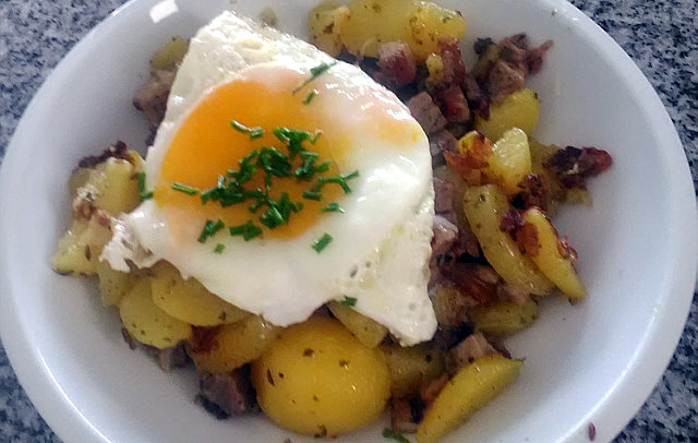 Das Ei und die Schinkenwürfel waren die Überresten von meiner Backerei.