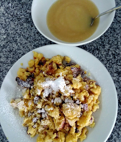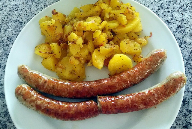 Rostbratwürstl mit Erdäpfelschmarrn.