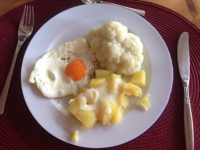 Spiegeleier und Blumenkohl mit Butter-Zitronen-Sauce gemacht.