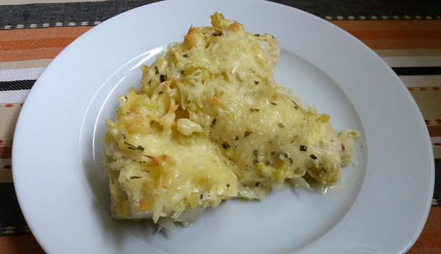 Heute Mittag gab es bei uns Kartoffel-Blumenkohl-Auflauf.