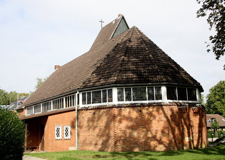 Weil die Sonntagskirche gestern eine besondere Kirche war, gibt es die Auflösung schon heute. Und weil das gestern ein besonderer Tag war ... der Tag des stillen Gedenkens an die Kriegstoten und Opfer der Gewaltbereitschaft und Gewaltherrschaft. Wegen dieses Tages hatte ich ganz gezielt diese Kirche ausgesucht. Eine Kirche der Hoffnung. Karin hatte ja kommentiert, dass sie die Kirche an eine Notkirche erinnert. Und unsere gestrige Kirche ... ![]() ... ist auch eine solche "Notkirche". Es gab kurz nach dem Krieg ein solches Notkirchen-Programm, weil ja viele Kirchen zerstört waren und es an gottesdienstlichen Räumen mangelte. Unsere Kirche ... ![]() ... entstand 1949. ![]() Es gibt Notkirchen, die als Zwischenlösung konzipiert waren, das war dann ein zu Kirchenzwecken provisorisch hergerichtetes, ursprünglich anders genutztes Gebäude, wie z.B. eine Baracke, Scheune, Halle, Lagergebäude. Oder in eine beschädigte Kirche wurde eine Zwischenwand eingezogen und nur in einem Teil der Kirche der Gottesdienst gefeiert. Und dann gab es die neugebauten Barackenkirchen, in Gebäude, die mit einfachen Materialien wie Wellblech, Holz oder Pappe gebaut wurden. Diese Kirchen wurden fast alle später durch Neubauten ersetzt. Und es gab das Bartning-Notkirche-Programm ... diese Kirchen waren auch Notkirchen, aber nicht nur für den Übergang gedacht und so stehen die meisten heute noch und werden auch als Kirche genutzt. So auch unsere Kirche. Ich musste über den gestrigen Kommentar von Marion aus Hamburg schmunzeln ... sie sagte: "Für mich eine wunderschöne Kirche, die mir sehr vertraut vorkommt, obwohl ich sicher noch nie dort war". Ich glaube, diese Kirche wird Marion bald noch viel vertrauter vorkommen ... ... denn wir waren gestern in Hamburg, im Stadtteil Schnelsen. Das ist die damals als Notkirche gebaute Adventskirche in Hamburg-Schnelsen. |