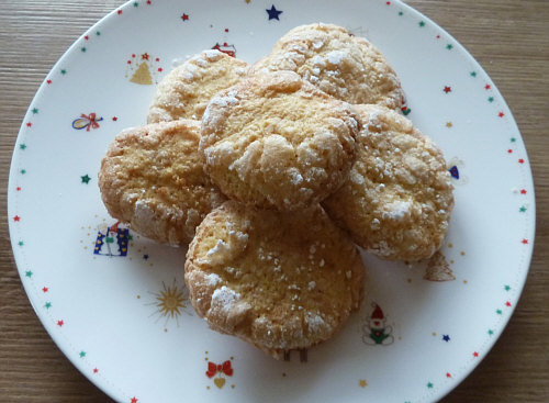 Deswegen sieht man nun die groben Puderzucker”nester” noch auf dem Gebäck.
