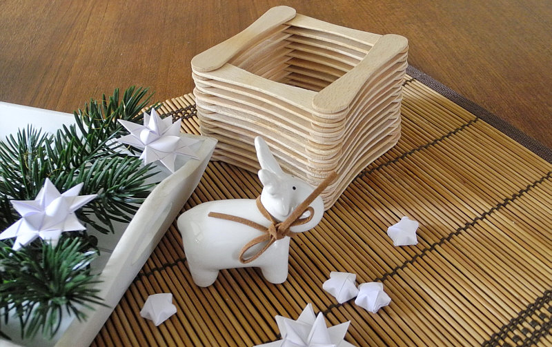 Auf diese Eisstiele kommen dann doppelseitig Klebepunkte und nun werden sie