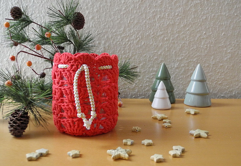 Elfi hat mal rotes Garn und mal helles Glitzergarn genommen.