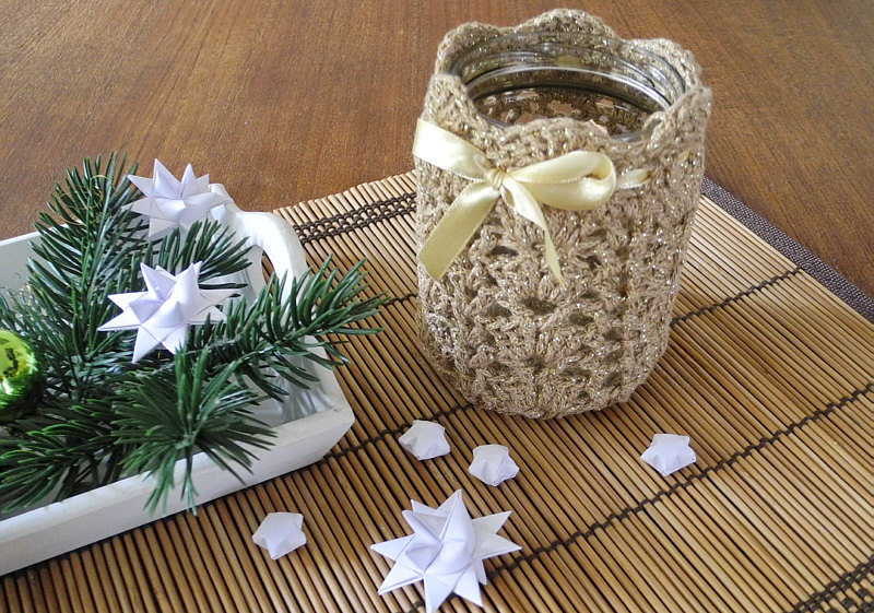 Auch hier hilft das Internet mit Anleitungen für diese Häkelhülle weiter.