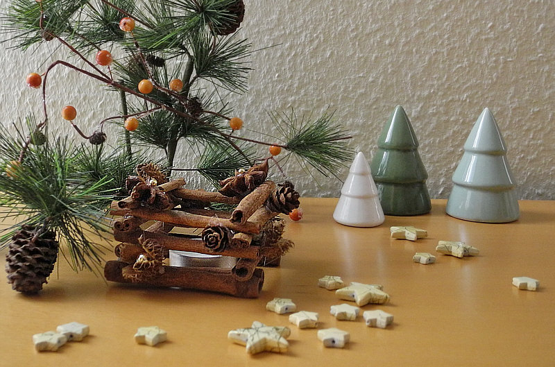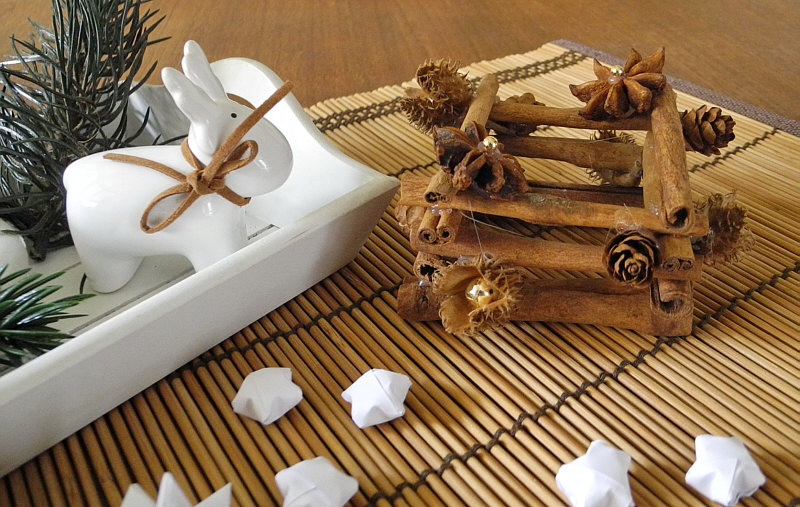 Man klebe einfach Zimtstangen aufeinander und Sternanis, Bucheckern, kleine