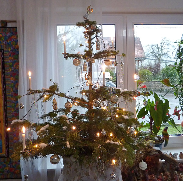 Ein liebevolles Wiedersehen feiert Helga in jedem Tag mit ihrem Baum. Denn der steht im Topf und kommt nach Weihnachten wieder ins Freie. Nun warten wir mal, bis es dunkel ist: weiter