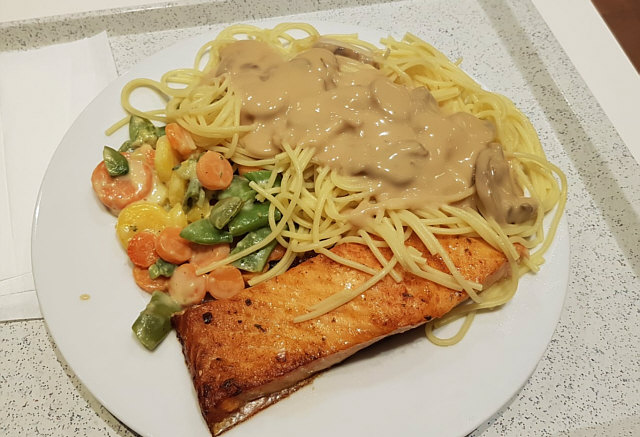 Dort gibts in den letzten Wochen immer Lachs und den mögen wir beide.