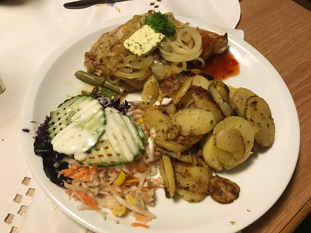 Gegessen im Gasthaus ... der Gastwirt ist 70 und kocht immer noch.