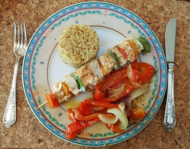... und dann gibt es einen Fischspieß (den gabs fertig beim Intermarché),