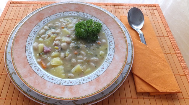Ich habe Weiße-Bohnen-Eintopf gekocht.