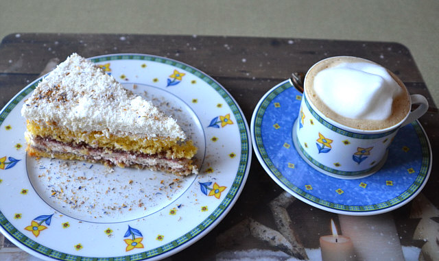 obenauf kommt auch 1/4 Schlagobers - mit Kokosflocken bestreuen.