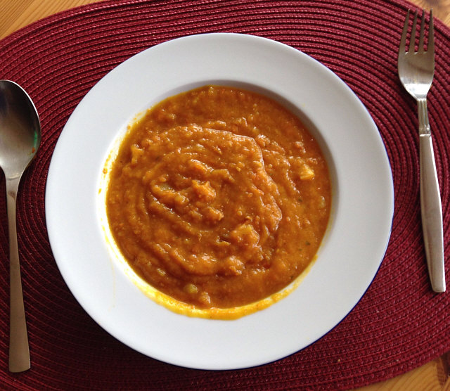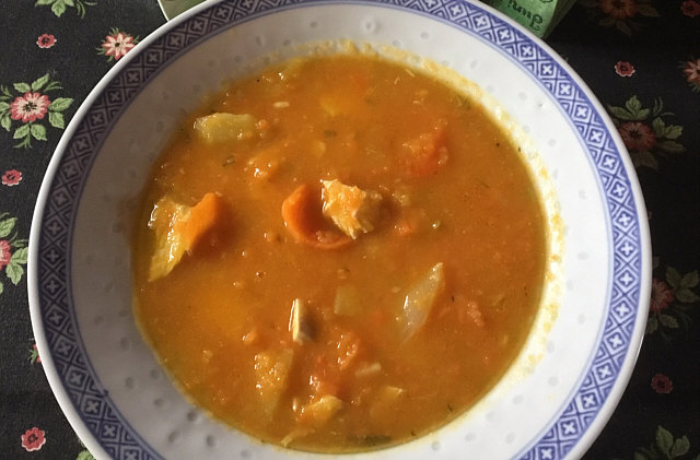 Kürbis-Möhreneintopf mit Kochwurst (die Wurst war leider schon gegessen