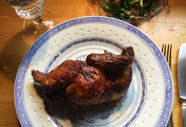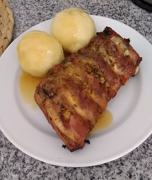 Bei 170 Grad ca. 1 1/2 Stunden gebraten.