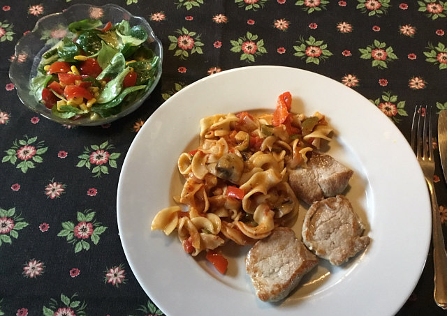 Heute gab es den letzten Kürbis und Zucchini aus unserem Garten.