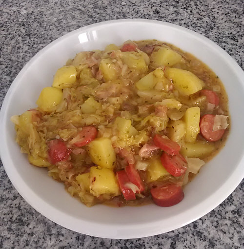 Das war ein Restlessen. Im Kühlschrank hatte ich 1/2 Kohlkopf,