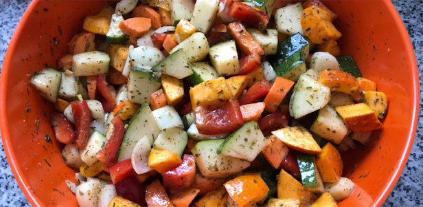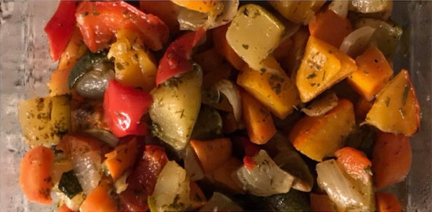 zu einem Ofengemüse verarbeitet. Das kleingeschnittene Gemüse habe ich