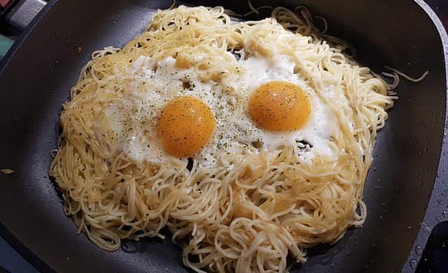 etwas Fleischwurst geröstet und oben drauf gegeben.