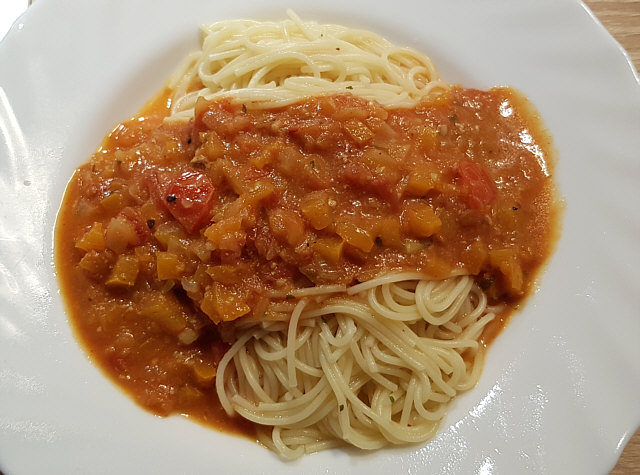Capellini mit (gelber) Paprika/Tomaten-Soße