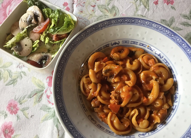 Für die Kinder gab es Tomatensoße dazu, für uns Champignons.
