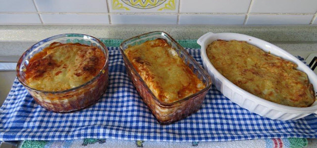 Lasagne, aus Rinderhack, wie immer zuviel.