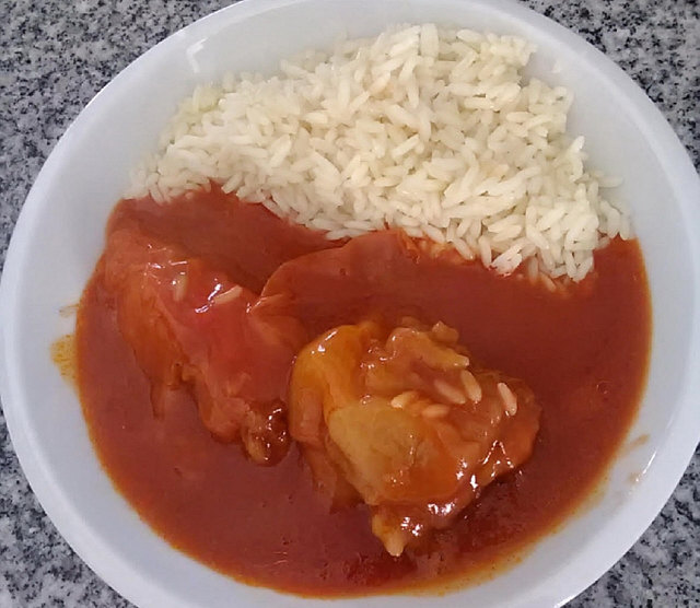 gekaufte Ravioli mit selbst gemachter Paprikasoße.