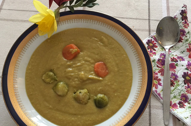 Rosenkohlcremesuppe mit Curry, Kreuzkümmel und Kokosmilch.