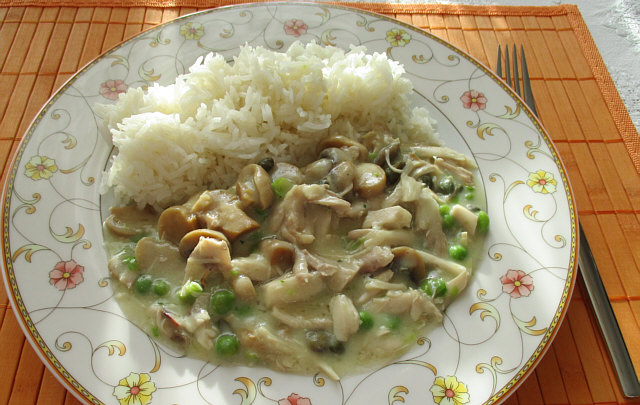 mit einer Béchamelsoße (selbstgemacht, mit etwas Zitrone abgeschmeckt)