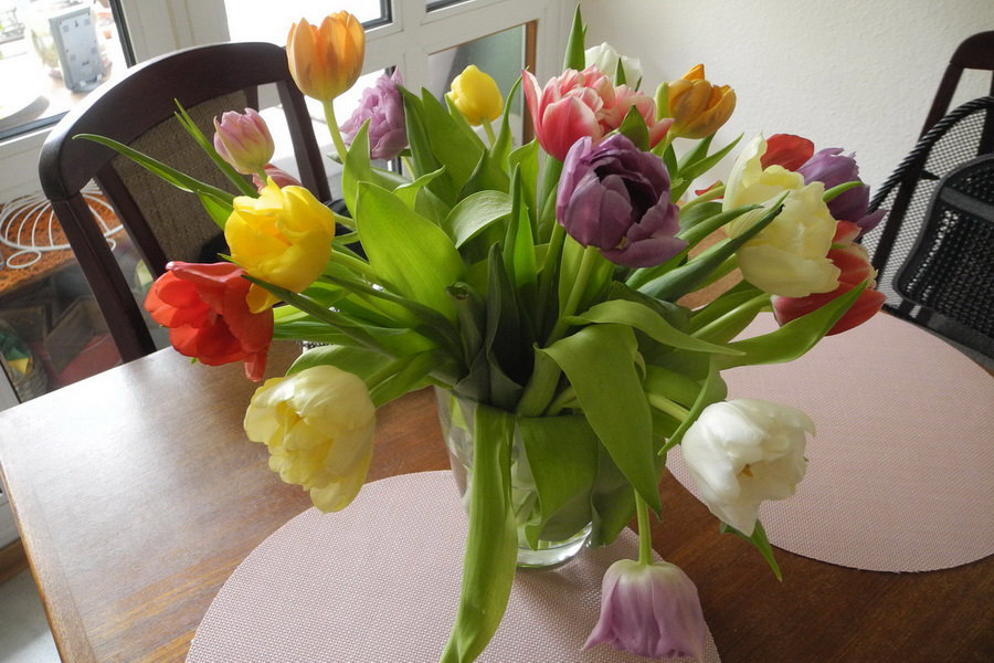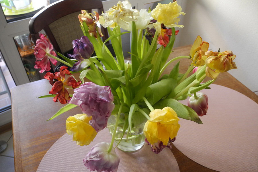 ![]() Ein Tulpenstrauß ... auf dem Tisch von Elfi S. Elfi mag alle Blumen ... und Tulpen ganz besonders. Die im Beet und auch die in der Vase. Sie zaubern ein wenig Frühling in die Wohnung. ![]() Nun ... nach einer Woche sind die Tulpen verblüht. Die meisten entsorgen jetzt den Tulpenstrauß. Aber Elfi tut das nicht ... der Strauß bleibt stehen und darf welken, und erst wenn die Blütenblätter auf den Tisch rieseln, wird Abschied genommen. Denn Elfi mag auch verwelkende Tulpen ... denn auch sie haben, besonders im Gegenlicht, schöne filigrane Strukturen. Elfi findet, dass keine Blume so schön und elegant altert wie die Tulpe. ![]() |