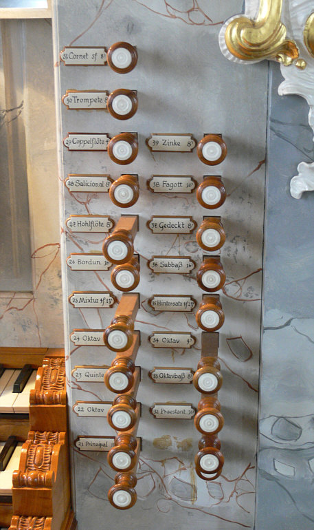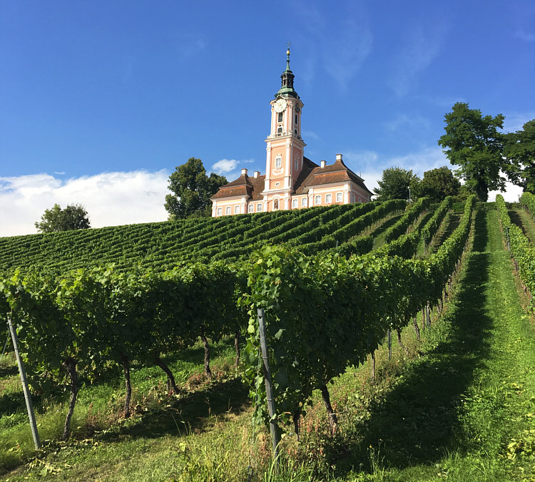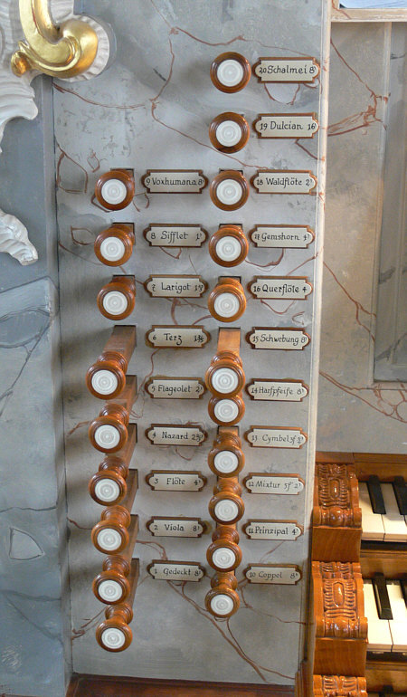 Das ist unsere heutige Sonntagskirche ... ![]() ... und beim nächsten Bild wird uns klar ... ganz egal, ob uns der Innenraum der Kirche gefällt oder nicht ... ![]() ... hier machen wir Urlaub :)). Von der anderen Seite aus hat man diesen Blick: ![]() Der Beton täuscht ... eigentlich steht die Kirche inmitten von Weinbergen: ![]() Wir gehen mal rein und schauen uns die Orgel an: ![]() Wir dürfen sogar einen genauen Blick auf die Register der Orgel werfen:
