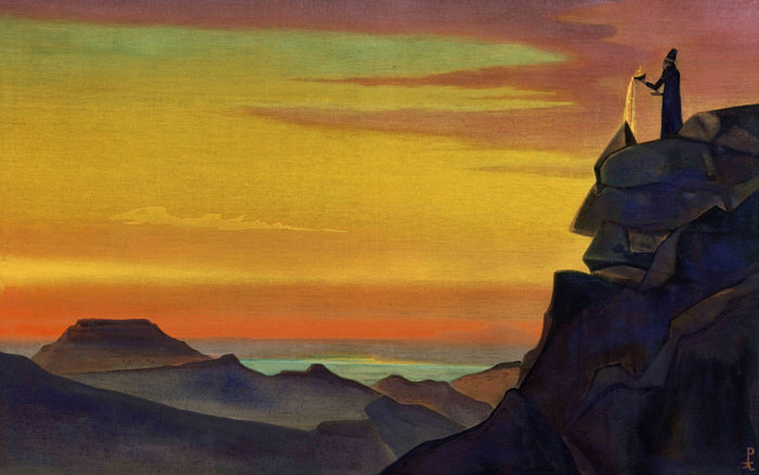 Er wurde 1874 in St. Petersburg geboren. Er war Schriftsteller Archäologe Wissenschaftler Reisender Philosoph und vor allem Maler Er wurde mehrfach für den Nobelpreis nominiert. Als 1917 die russische Revolution ausbrach, ist er in die USA emigriert. Gestorben ist er 1947 in Kullu, Indien. Heute im Kalenderblatt zu Gast: der Maler Nicholas Roerich. Die Themen seiner gemalten Bilder sind hauptsächlich deren Drei ... ... die frühe russische Geschichte ... das moderne Russland nach der Revolution ... ... und ... was ich heute hier zeigen will ... Buddhismus und Esoterik. Hier eine Auswahl seiner Bilder zu diesem Thema: ![]() Festung des Geistes ![]() Stern des Morgens ![]() Sofia - die Weisheit ![]() Dämmerung ![]() Tibet ![]() Die Kraft der Höhlen ![]() St. Panteleimon, der Heiler ![]() Aus der Ferne ![]() Elija, der Prophet ![]() Berg der fünf Schätze ![]() Das Lied von Shambala ![]() Der Stern des Helden ![]() Der Kelch von Christus ![]() Buddha, der Sieger ![]() Zarathustra |