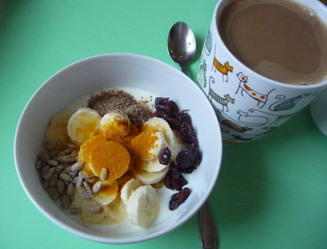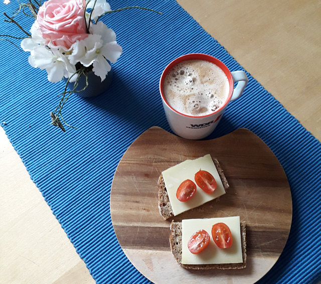 Hier mein Wochentags-Frühstück (Sa/So gibt's mehr);