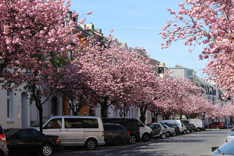 Ja, die Menschen ... da liegt Freud und Leid nah beieinander und der eine macht was richtig gut und der andere wills kaputt machen. Wir sind in Bonn. Vor 30 Jahren war die Straßen grau mit viel Durchgangsverkehr. Die Stadtplaner dachten sich etwas schönes aus, beruhigten die Verkehrslage und pflanzten in zwei Straßen viele Bäume der japanischen Blütenkirsche. ![]() ![]() Zuerst waren die Anwohner dagegen, sie hatten Angst, dass ihre Wohnungen durch die Bäume verdunkelt werden. Und heute ? Gelten diese beiden Straßen als ein Wahrzeichen von Bonn. Es gab zwischenzeitlich sogar ein Kirschblütenfest, aber wegen des hohen Besucherandrangs findet es nicht mehr statt. Der Besucherandrang ist aber trotzdem da. Immer mehr japanische, chinesische und andere asiatische Besucher kommen. Und auch immer mehr Deutsche finden den Weg in die beiden Straßen. Auf Instagram sind die Kirschblüten auch der Star und und und. Es findet ein Flohmarkt statt, die kleinen Läden in den Straßen bieten besondere Aktionen, ein Lokal verdreifacht seinen Umsatz ... und viele Fotografen sind in den beiden Straßen unterwegs: ![]() ![]() Eigentlich doch alles eine wunderbare Sache. So beliebt, dass extra ein Schild "Kirschblüten-Fotografen, bitte Schritt fahren" aufgestellt wurde. Kurze Zeit später wurde es allerdings geklaut. An den Wochenenden werden nun sogar mobile Toiletten aufgestellt, denn die Anwohner hatten sich beschwert, dass so mancher für seine dringenden Bedürfnisse Hauseingänge und Vorgärten benutzt hat. Das sind so die kleinen Tücken des Alltags. Nicht jedem gefällt dieses bunte Treiben auf den Straßen. Im vorigen Jahr stellte jemand ein Plakat auf mit den Worten "7000 Nägel ... an alle Bonner ... wenn das Kirschblütenfest nicht ab sofort genossen und der Fotowahnsinn nicht gestoppt wird, jagen wir 7000 Kupfernägel in die Bäume". Dazu kams Gott sei Dank dann doch nicht. Dafür hat jetzt jemand in der Nacht vom letzten Freitag auf Samstag insgesamt 43 Kirschblütenbäume mit weißer Farbe beschmiert. Man hat entweder Worte draufgeschrieben ("Baum", "fällt") oder weiße Striche drauf gemalt. Man will versuchen, die Farbe zu entfernen, aber es kann sein, dass die Farbe nicht mit Wasser abwaschbar ist, dann müssen die Schmierereien sogar bleiben. Das meinte ich mit meinem Eingangssatz ... wo viele Menschen sind und auch dort, wo etwas schönes ist ... gibt es dennoch immer welche, denen das nicht gefällt, die neidisch sind, sich gestört fühlen usw. Doch vergessen wir das dennoch einen Moment und freuen uns einfach nur an dieser blühenden Straße: ![]() Hach ... es müsste viel mehr solcher blühenden Straßen geben. In viel mehr Städten. |